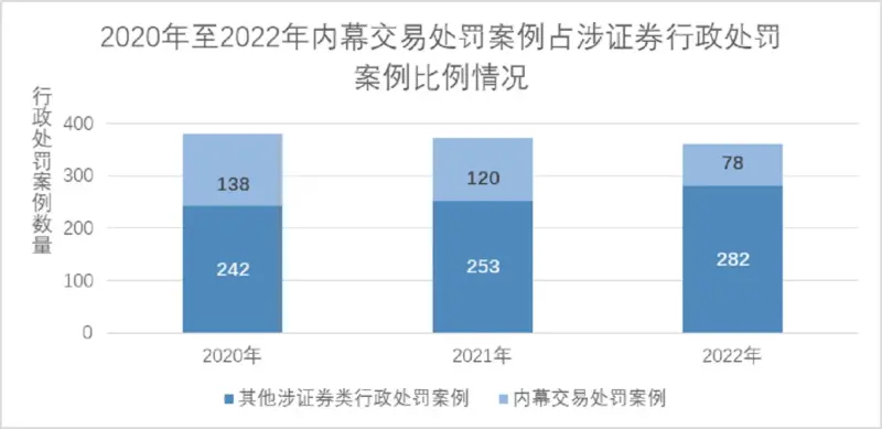 内幕交易案查处“关键少数”的监管力度显著增强,上市公司的董监高、实控人、大股东等“关键少数”作为上市公司内部人员,在获知内幕信息方面具有天然的优势,在凭借内幕信息获利方面也具有较大便利性。仅从2022年处罚情况来看,这类“法定知情人”作为内幕信息形成、传递的关键枢纽,其违法占比已达到近30%,所涉违法形态包括内幕信息知情人直接进行内幕交易、泄露内幕信息、建议他人交易等。可见,尽管监管部门愈发强化对“关键少数”的行为监管,但该群体的法律合规意识仍有待加强。