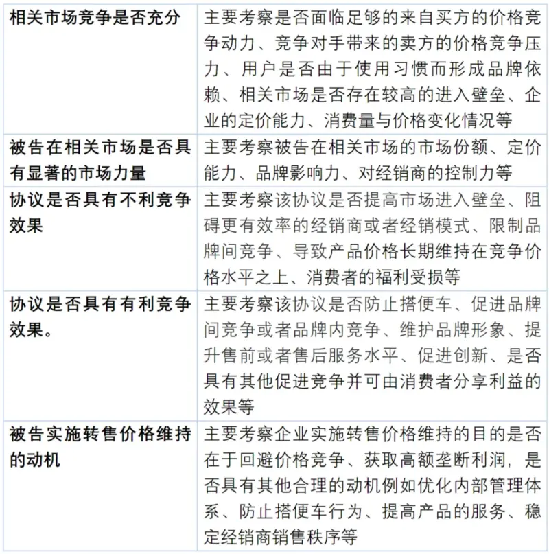 此外,就纵向价格垄断协议而言,结合《司法解释征求意见稿》第26条以及过往司法案例,纵向价格垄断司法案件中主要通过考察以下几个方面评估行为是否具有排除、限制竞争效果: