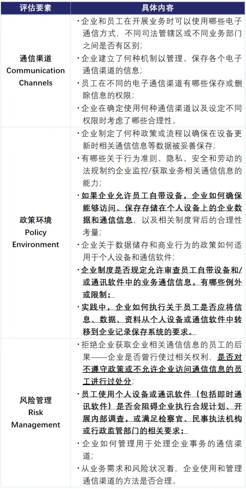 DOJ将从以下三个维度评估企业对于个人设备和通信平台的管理水平: