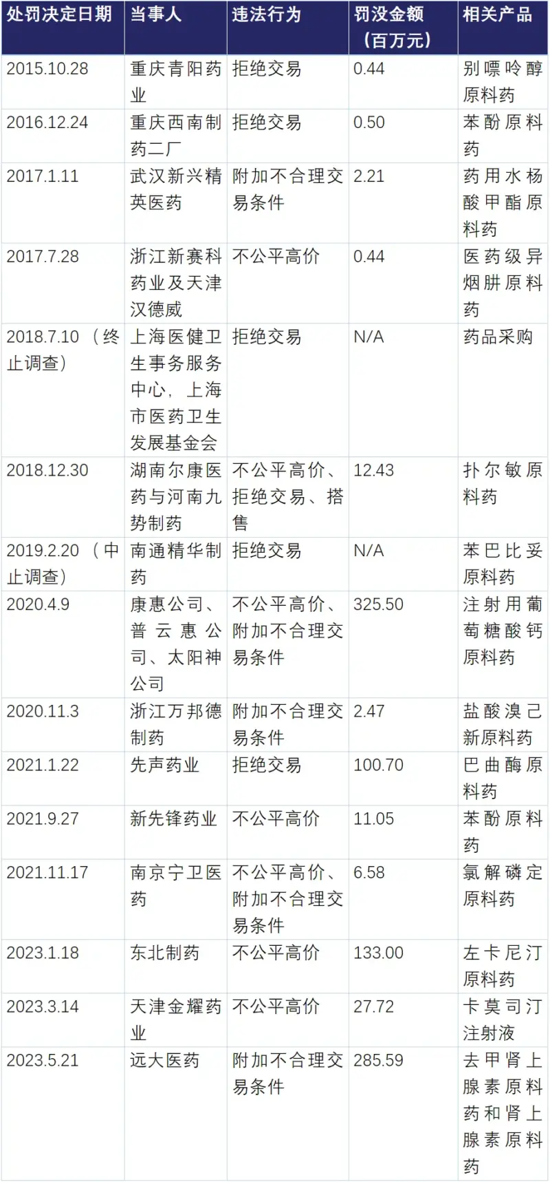 我们将医药领域历年反垄断执法公布案件的情况汇总在本文附件1中,供各位合规人士参考。