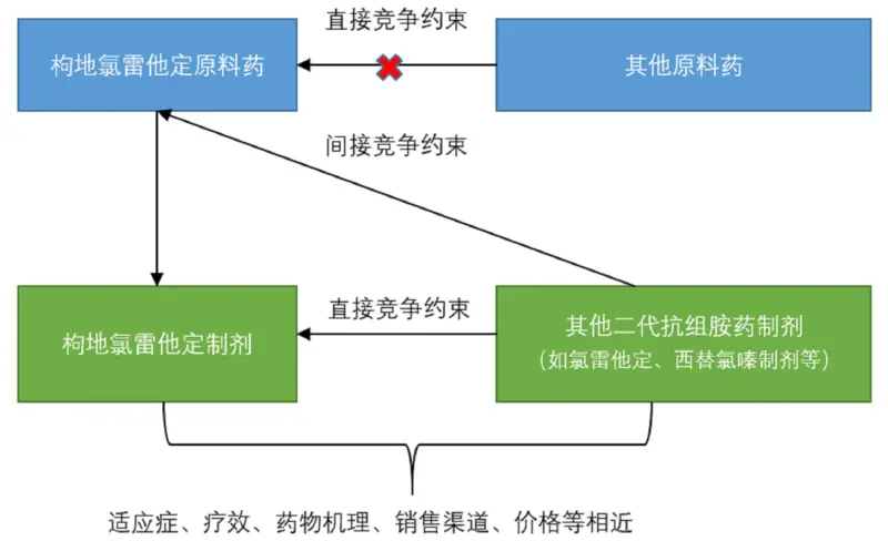 涉案原料药企业面临直接与间接竞争约束示意图