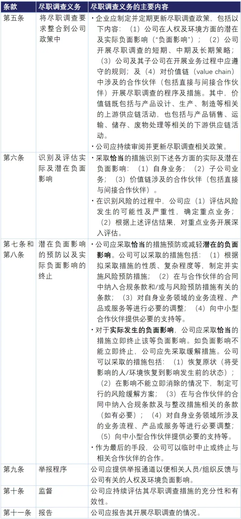 在欧盟供应链法案(草案)项下,企业应采取何种尽职调查措施取决于企业所在行业的特点、具体的经营活动内容、产品或服务的性质、风险的严重程度及可能性、公司的规模及能力等多个因素。换言之,企业的影响力越大、违法行为发生的可能性与严重程度被认为越高,企业承担的供应链尽职调查责任可能越重。