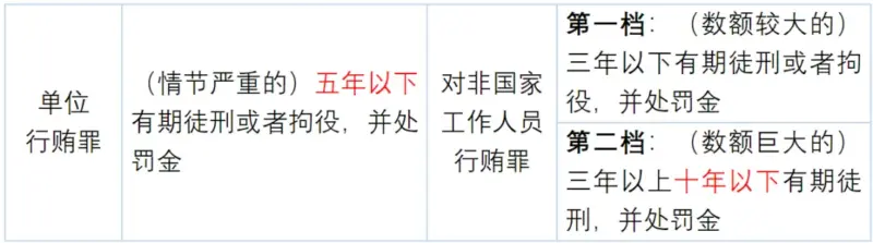 表2:单位行贿罪与对非国家工作人员行贿罪之间的罪刑“倒挂”
