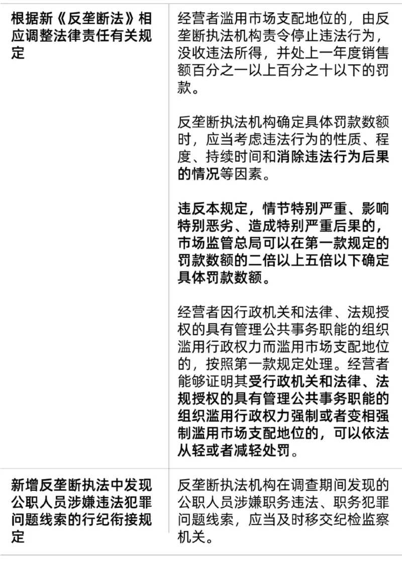 《禁止滥用规定》对于法律责任的部分进行了完善,以衔接《反垄断法》的修订,主要包括: