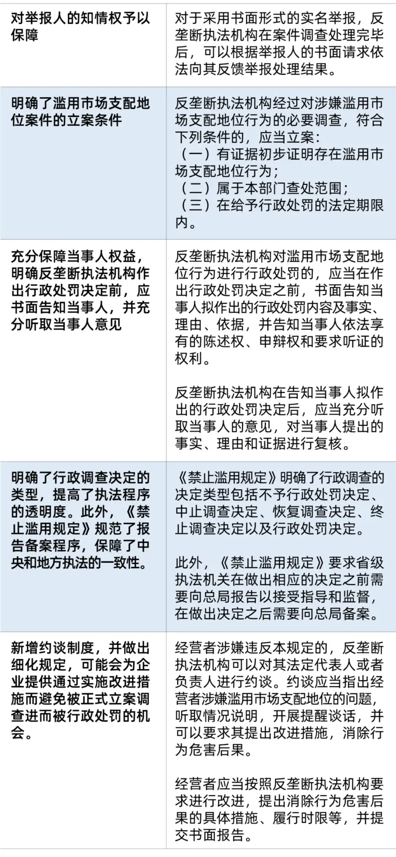 在《暂行规定》和《征求意见稿》的基础之上,《禁止滥用规定》对于滥用行为的行政调查程序做了进一步的完善和细化,大幅提升了被调查经营者以及举报人的可预期性。