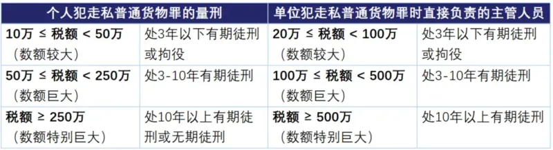 对于走私普通货物、物品罪而言,另一个常见争议焦点在于是单位犯罪还是企业员工的个人犯罪。从涉嫌走私普通货物、物品罪的量刑来看,就个人相同量刑期限而言,个人犯罪与单位犯罪对应的偷逃税额不同。